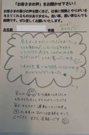 ※こちらのお客様より車両販売の感想頂きました ⇒ マツダ・AZワゴン