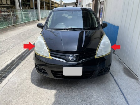 堺市より、日産・ノートのヘッドライト劣化再生のご依頼を承りました。