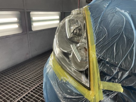 塗装職人の技術でヘッドライトのクリア塗装を行います。
