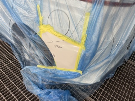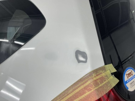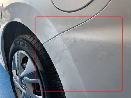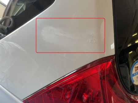 ご自分で左クオーターとリヤバンパーを補修された跡があるのですが、こちらを修理することになりました。