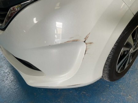 左フロントバンパー、左後方部が損傷を受けました。
