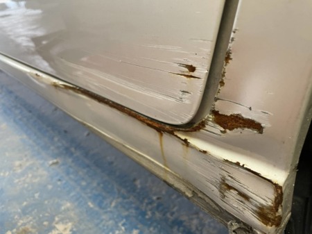 特に左スライドドアとステップ部分は深いキズとサビがあります。