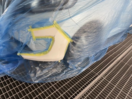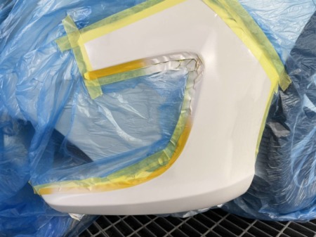 修理時は周辺が汚れないよう、丁寧にマスキングをして作業を進めます。