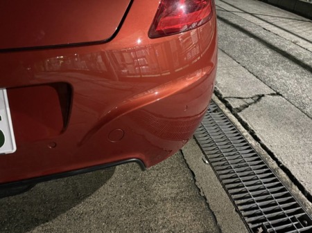 ▼リヤバンパーのキズも浅いので同様にコンパウンドで磨き上げます。