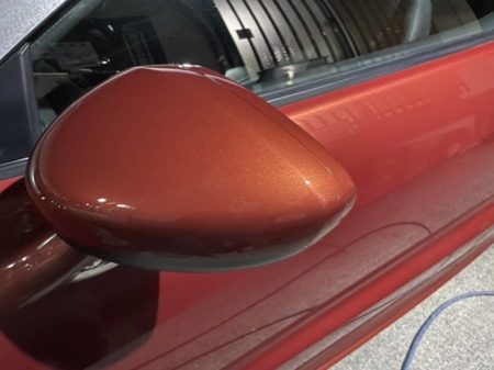 ▼作業前の写真は撮り忘れましたが、左ドアミラーの補修塗装も終わりました。