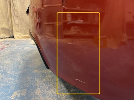 今回の塗装範囲は右ドアからクォーターにかけて行います。