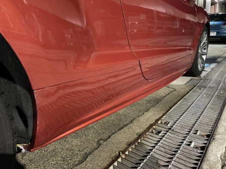 ▼右ドア、右サイドステップ、右クォーターにかけてへこみ、キズができています。