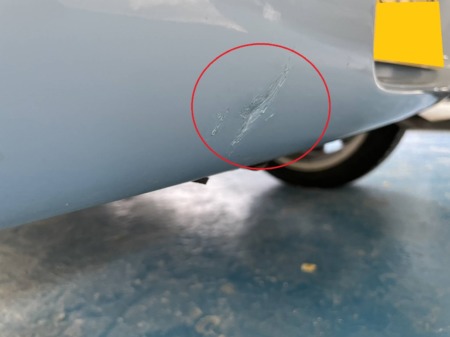 ▼ 車体後部のクオターパネルとバンパーを擦ってしまったようです。