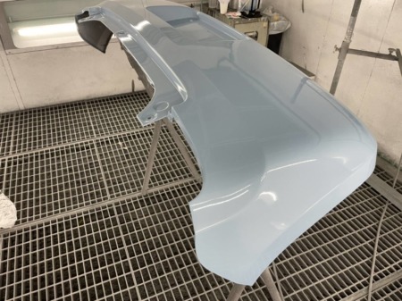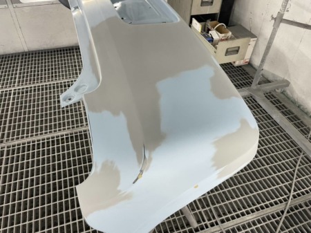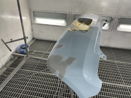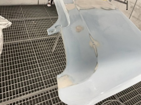 ▼ バンパーを一旦車体から取り外して単体で補修・塗装を行っていきます。