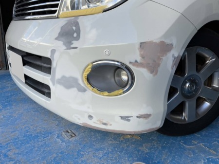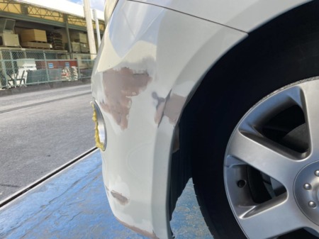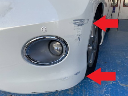 フロントバンパー左側にキズが出来ているので、元通りにしていきます!
