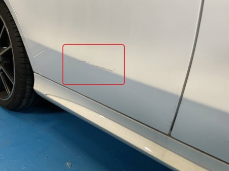 右リヤドアに擦り傷があったので修理していきます。