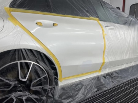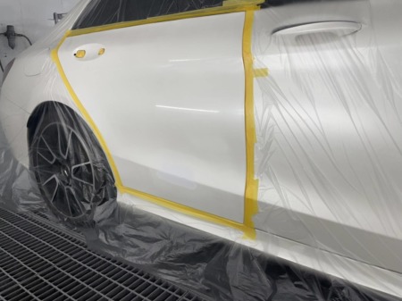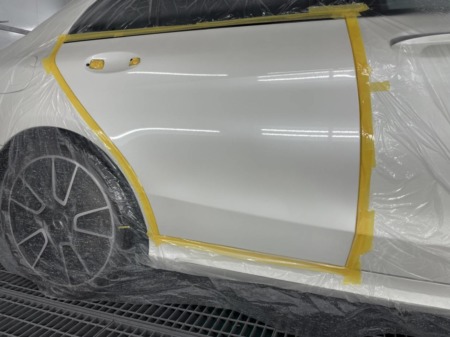 今回は右リアドアのみの塗装となるので、周辺をしっかりマスキングします。