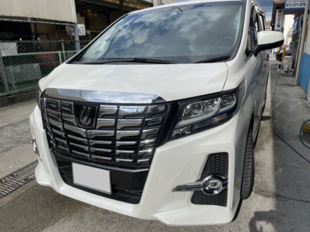 大阪市より、トヨタ・アルファードの車検整備でのご入庫となります。