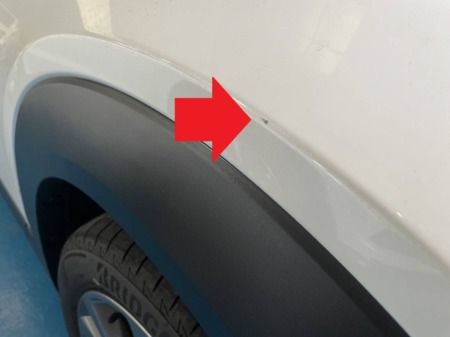 男性のお客様でフロントフェンダーのキズの修理での入庫になります。