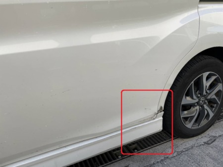 左のホイールハウスにへこみができ、スライドにも擦り痕のようなものがあります。