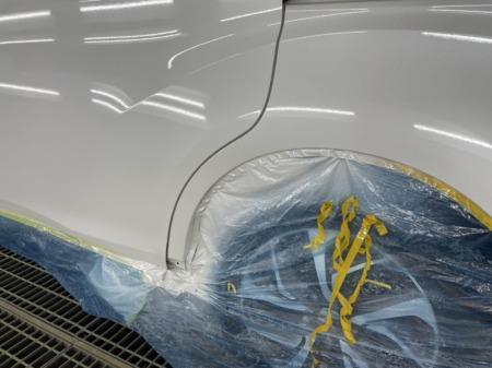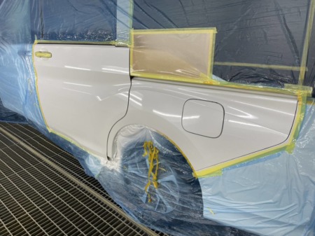 スライドドアはフロントドアと色の差が出ないよう、ボカシ塗装をします。