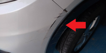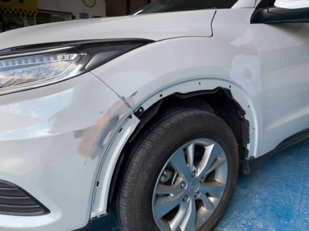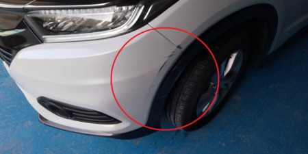 フロントバンパー左部分とフェンダー部分の損傷です。