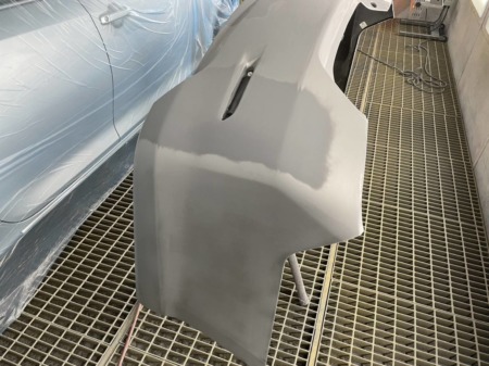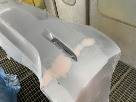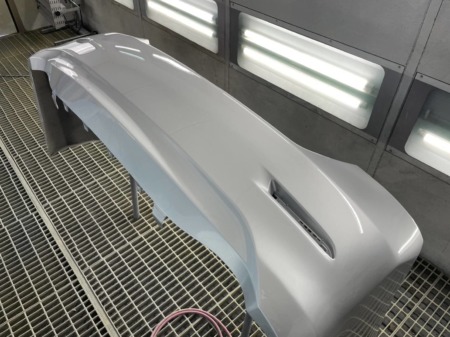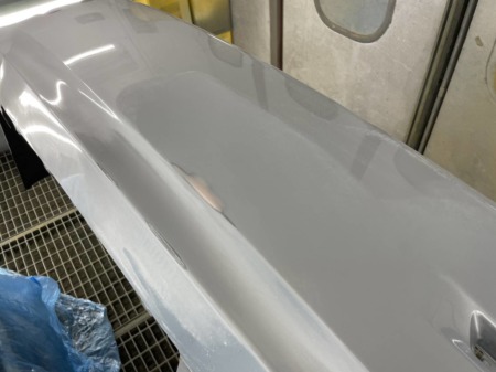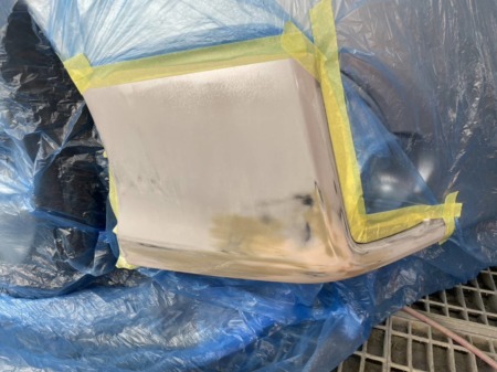 ▼リヤバンパーのキズも補修し、パテ塗りと研磨をします。