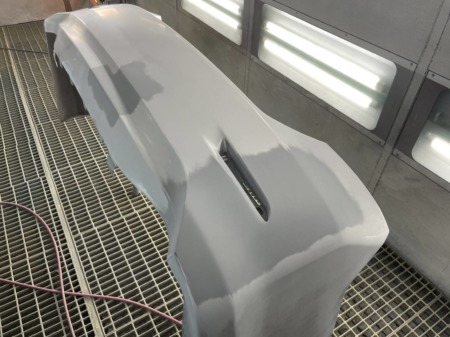 ▼パテの作業が終わったら、下地処理剤のサフェーサーを吹き付けます。