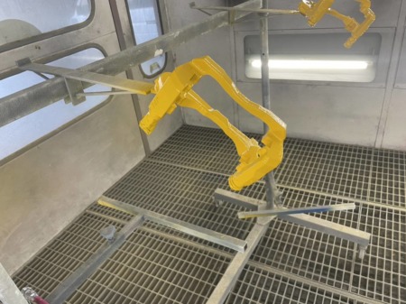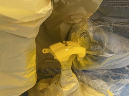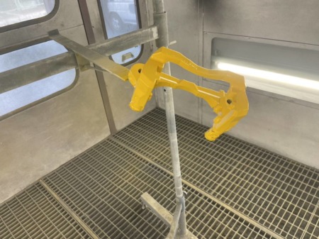 ▼お客様のご希望の色(イエロー)を満遍なく吹き付けて塗装を行って行きます。