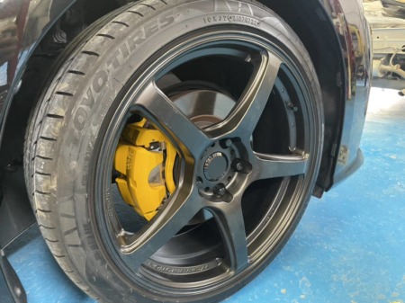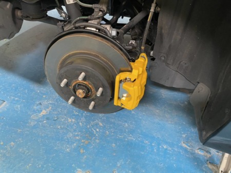 今回のお客様は、ブレーキキャリパーを黄色に塗装したいとのご要望でした。