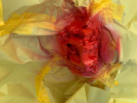 ▼キャリパーをパーツクリーナなどを使用してきれいに清掃し、脱脂をしておきます。