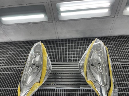 ▼ヘッドライトは磨いて黄ばみの補修をします。