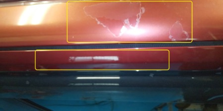 初期症状は白い斑点のように見えますが時間が経つとだんだんその斑点が大きくなり、塗装面が浮いてきて、最終的にクリア層が剥げてきます。