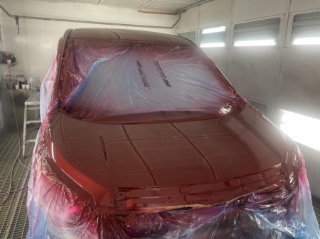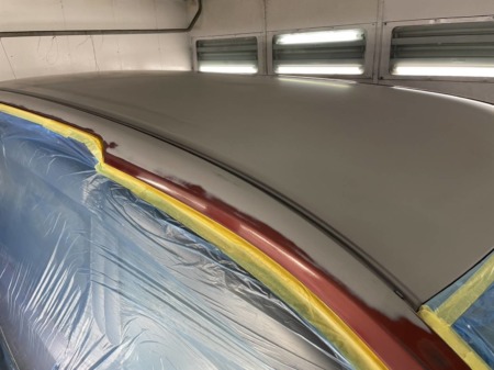 ▼ ベースカラー塗装が完了したら、紫外線による色の退化を防いだり、対候性の為にほとんどの場合、トップコートとしてのクリア塗装を行います。