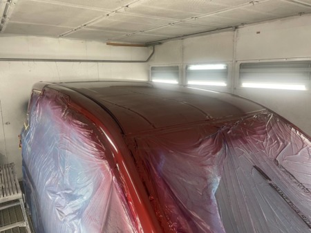 ▼ これから塗装工程に入りますが、塗装は専用のブースで行われ、ごみやほこりの付着などを防止します。