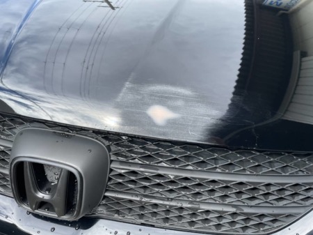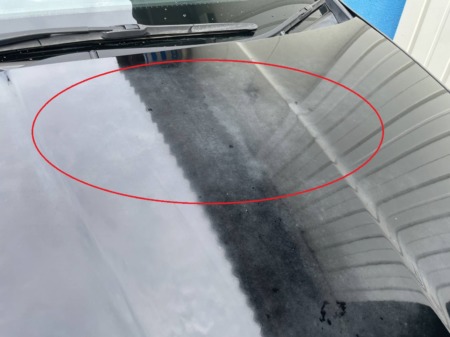 ▼ ボンネットのクリア剥がれの状態です。