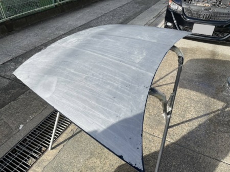 ▼ ボンネット先端に細かい傷があったので、まずそこをサンディングで削って滑らかに仕上げました。