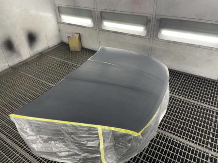 ▼ サフェーサ塗布後水研ぎして、足付け後塗装に入ります。