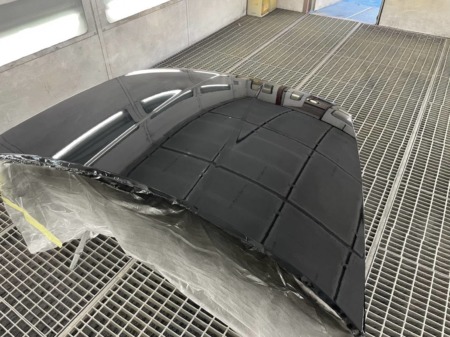 ▼ これから塗装工程に入りますが、塗装は専用のブースで行われ、ごみやほこりの付着などを防止します。