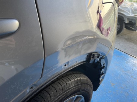 ディーラーでは交換といわれるような状況でしたが、弊社では板金修理で対応可能ですので元通りに仕上げていきます!