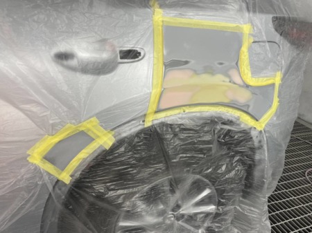 ▼へこみの修正が終わったら、パテを塗って研いでいきます。
