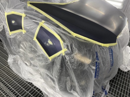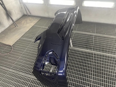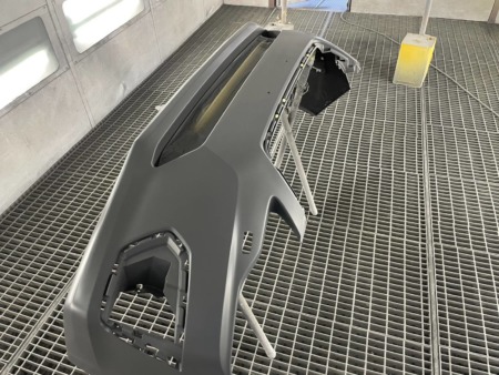 ▼ 新品のバンパーが入庫したので現車の色に合わせて塗装をします。