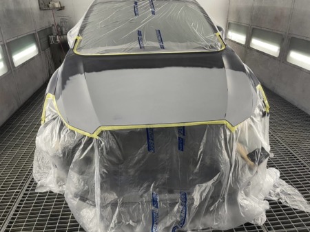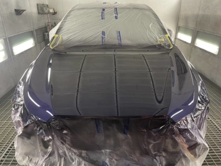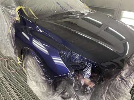 ▼ 塗装が完了したらすべてのマスキングを取払いフロントバンパー、ナンバープレートも取り付けて数種類のバフとコンパウンドを使い分けポリッシャー仕上げで完成となります。