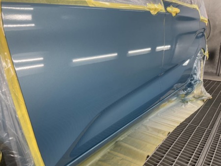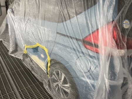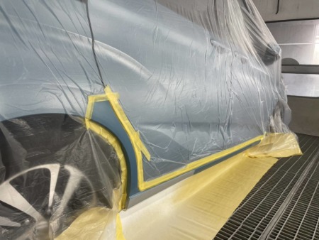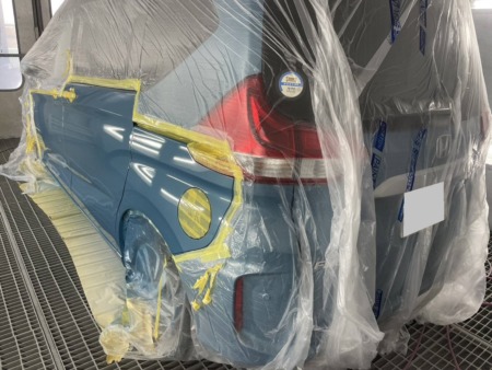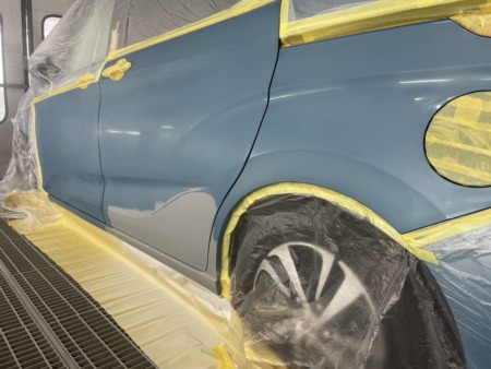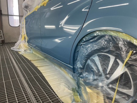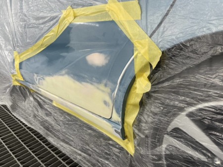 塗料の差が出ないようぼかし塗装をするため、リアフェンダーまで塗装します。