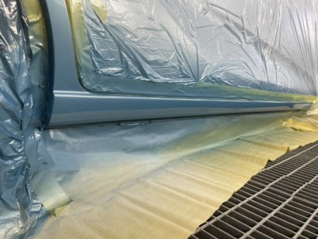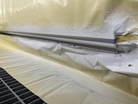▼左側面部のベース塗料の吹き付けが終わりました。