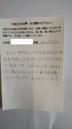 鈑金修理をしたお客様からの感想(ホンダ・ステップワゴン 堺市)