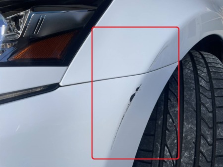 左側のフロントバンパー、フロントフェンダーにキズができてしまいました。