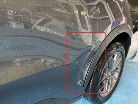 クォーターを塗装する理由は、リアドアと色の差が出ないようにぼかすためです。