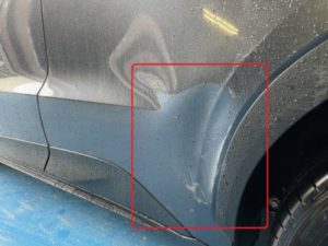 ▼ リアドアからクオーターパネルにかけての傷が結構多く見られました。