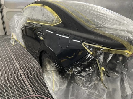 リアドアとクオーターパネル以外をマスキングでしっかりと養生をします。