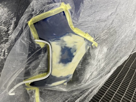 ▼塗装範囲以外は塗料が入り込まないようしっかりマスキングし、塗装面はシリコンオフで脱脂しておきます。