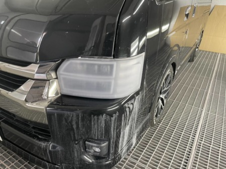 ヘッドライトのクリアー塗装事例(堺市中区 トヨタ・ハイエース)