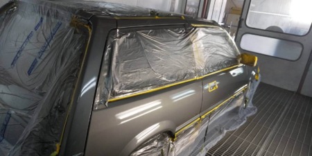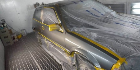 ▼ホコリやごみの付着が最低限になるよう「塗装ブース」で塗装をします。