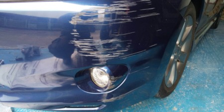 ・バンパーのキズの部分をペーパーで研磨して、ささくれを取り除きます。