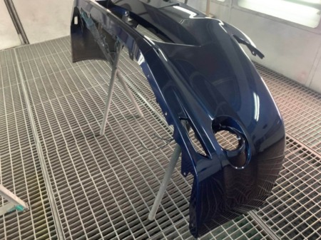 ・バンパー全体を塗装しますので、損傷箇所以外にもペーパーがけをして塗料の密着が高まるよう下準備をしておきます。